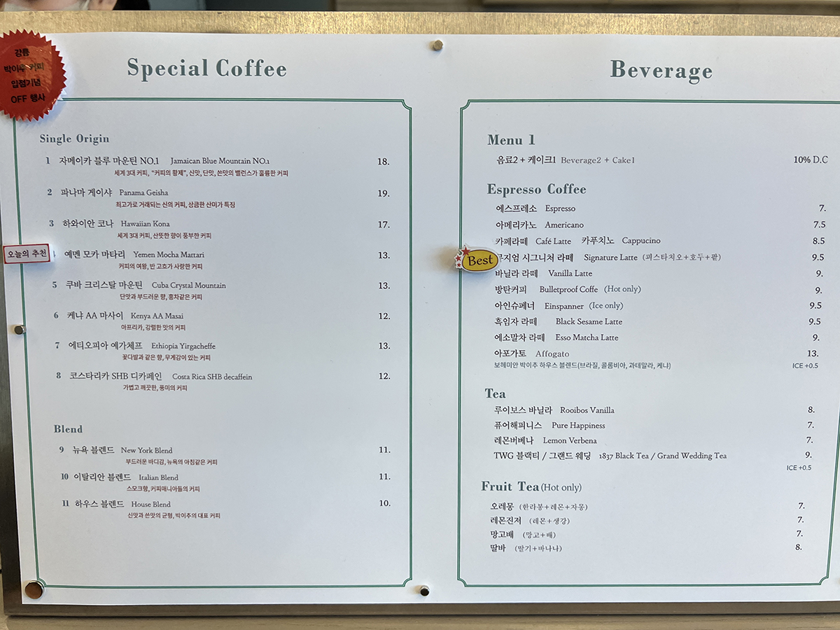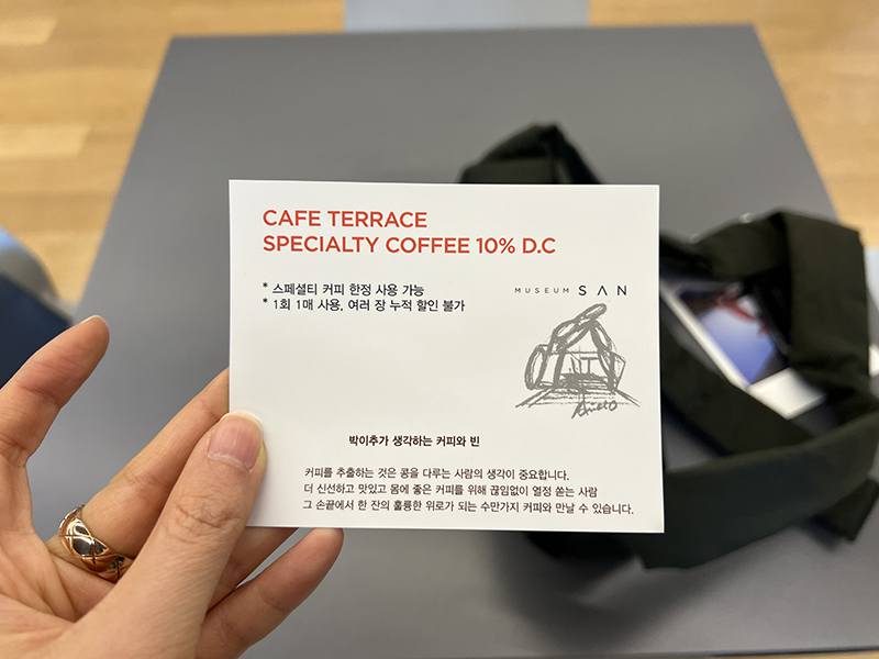 티켓 구매할 때 스페셜티 커피 한정 사용가능한 10% 쿠폰을 준다