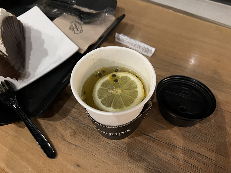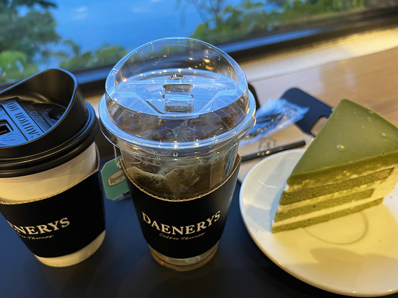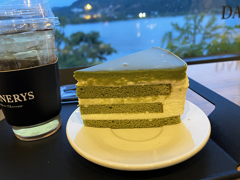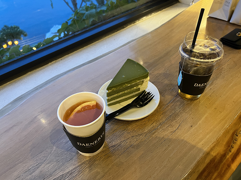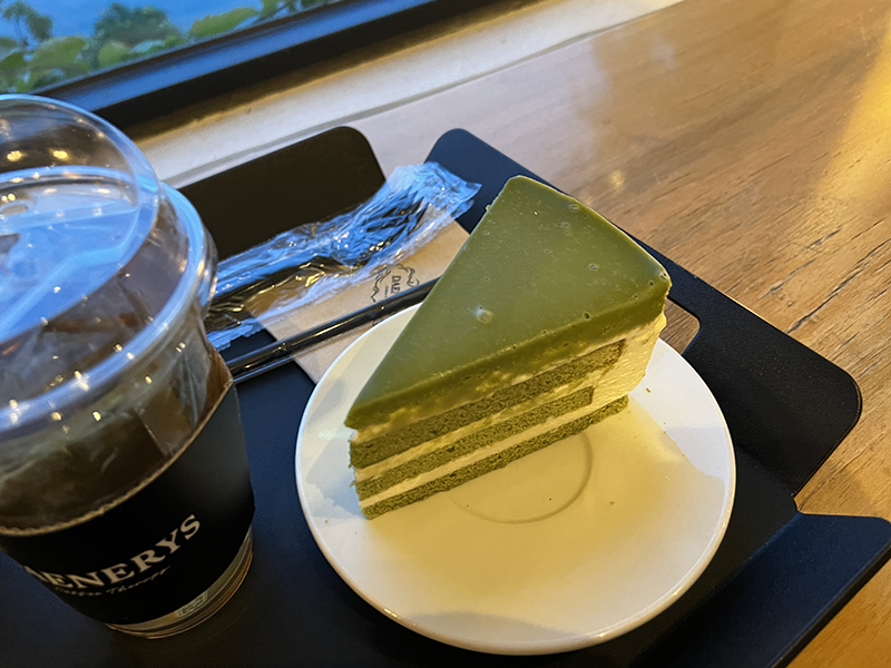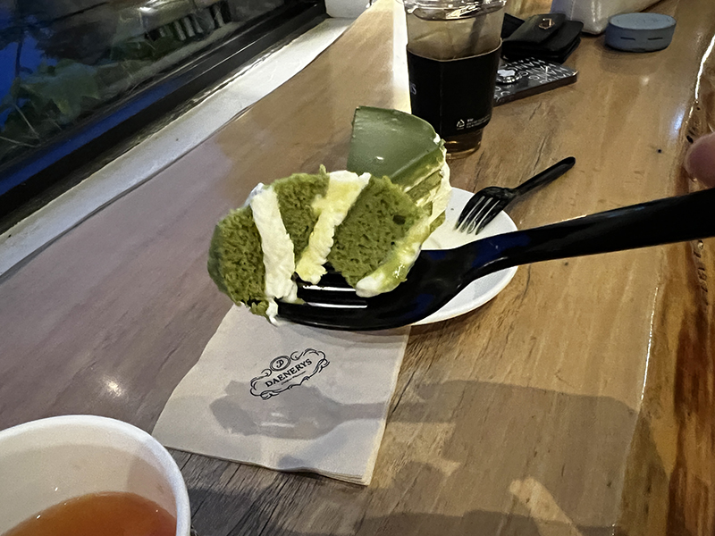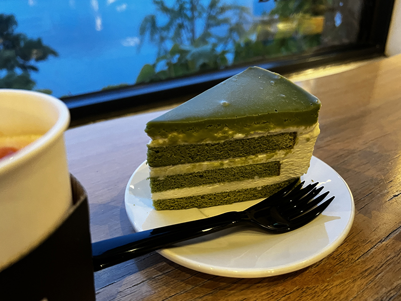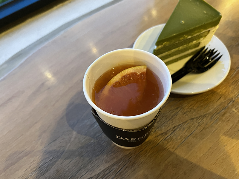 자몽티 한 모금, 말차 케이크 한 입 먹었는데