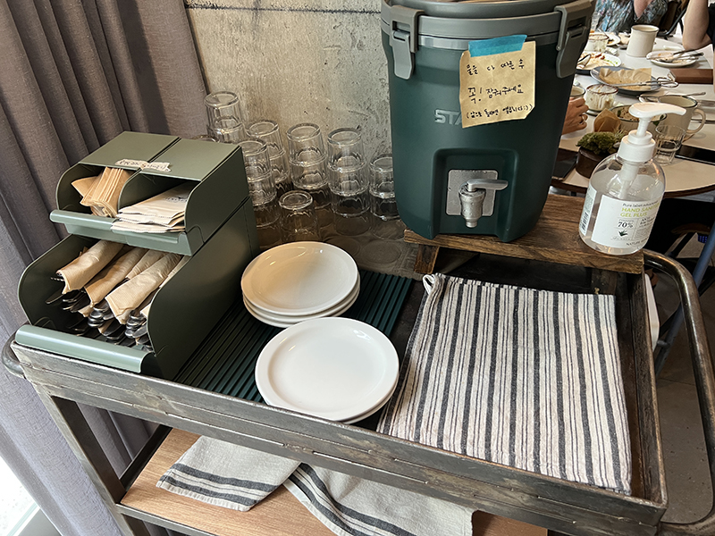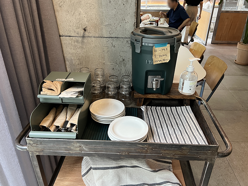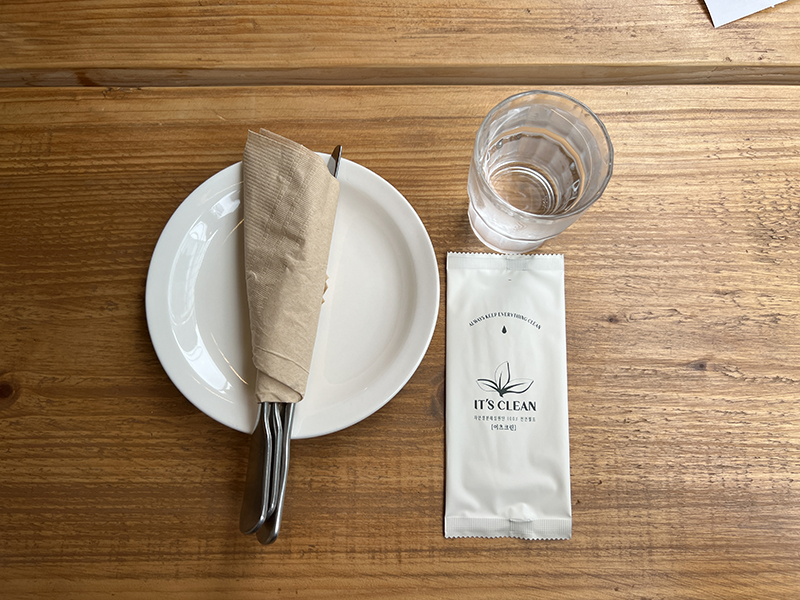 티슈, 물티슈, 커트러리, 앞접시, 물은 모두 셀프!