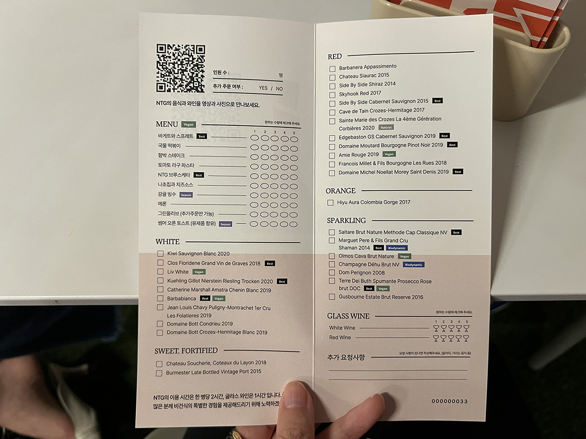 테이블마다 있는 종이에 볼펜으로 먹을 걸 체크하면 됨!