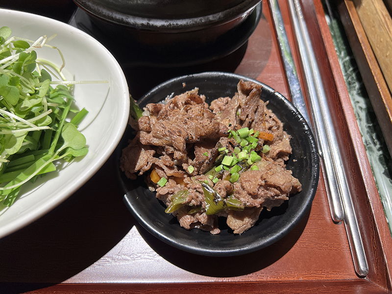 소불고기, 자작한 비빔된장이 밑반찬과 함께 나온다