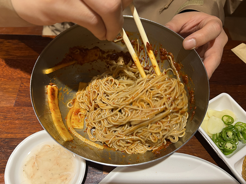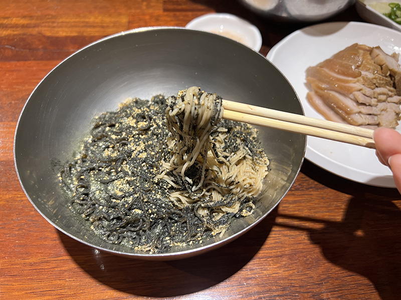 들기름 막국수는 비벼 나왔으니 섞지 말고 먹다가 조금 남았을 때