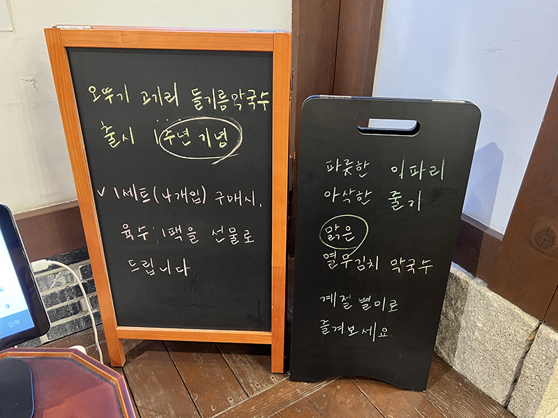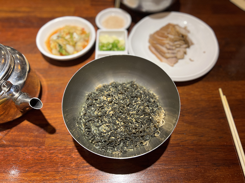 바로 주문을 받는다! 우리는 수육, 들기름 비빔 막국수 하나씩을 주문했지