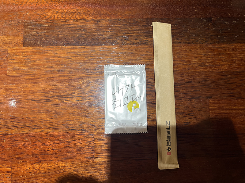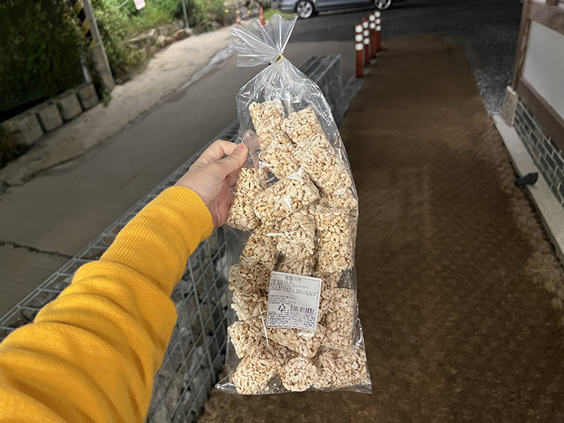 통밀강정도 하나 집어 나왔습니다! 들기름 막국수에 넣은 육수가 너무 맛있어서