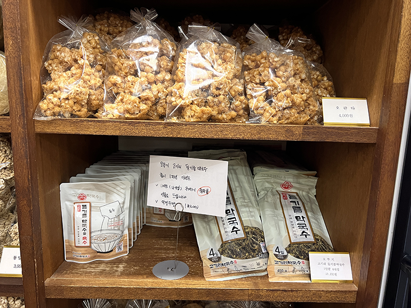 나올 때 통밀강정, 오란다, 고기리막국수 밀키트 등이 있어서