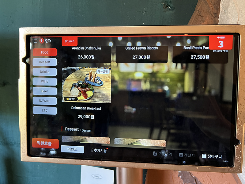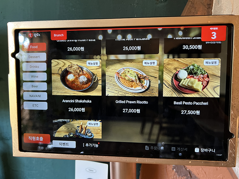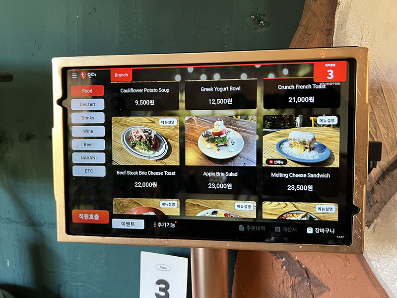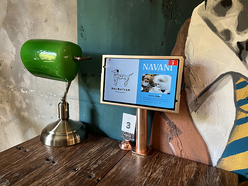 테이블마다 조명과 주문할 수 있는 태블릿,