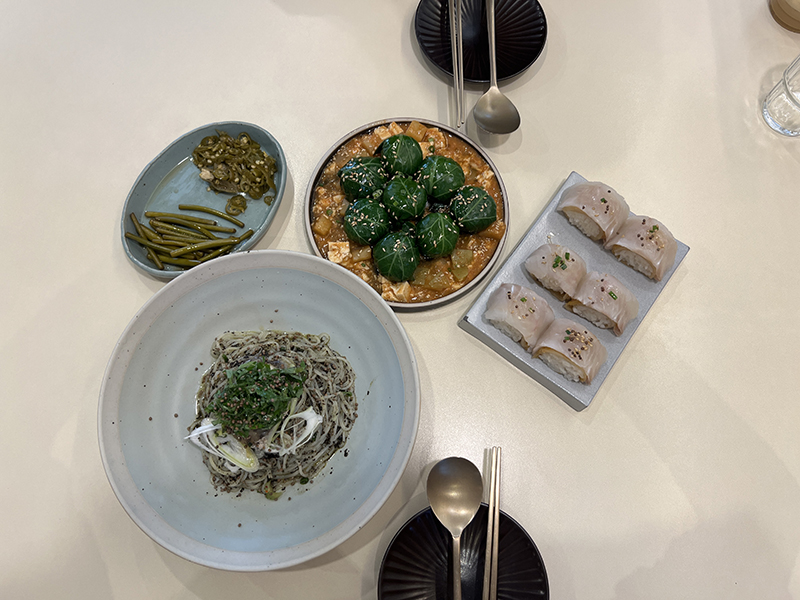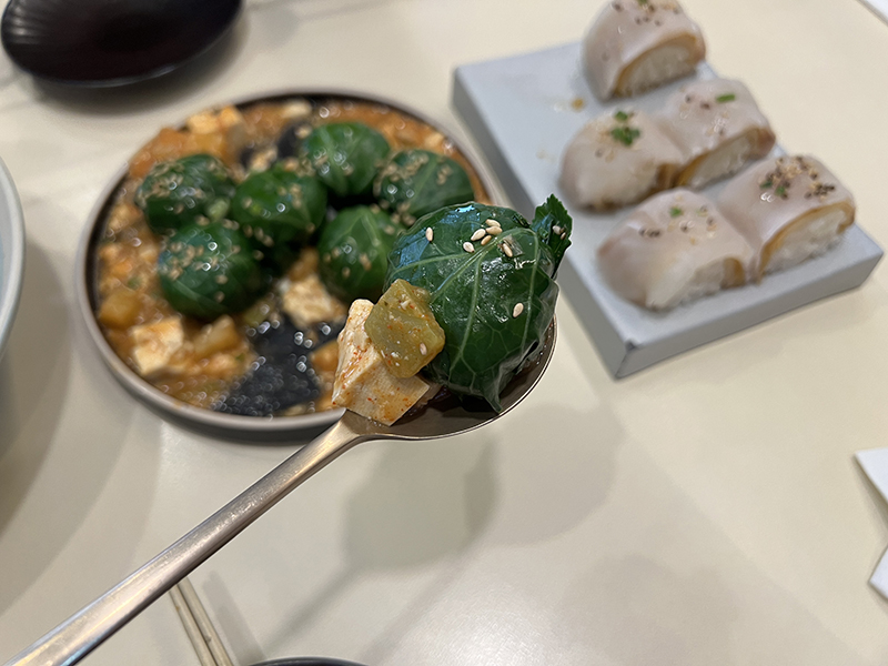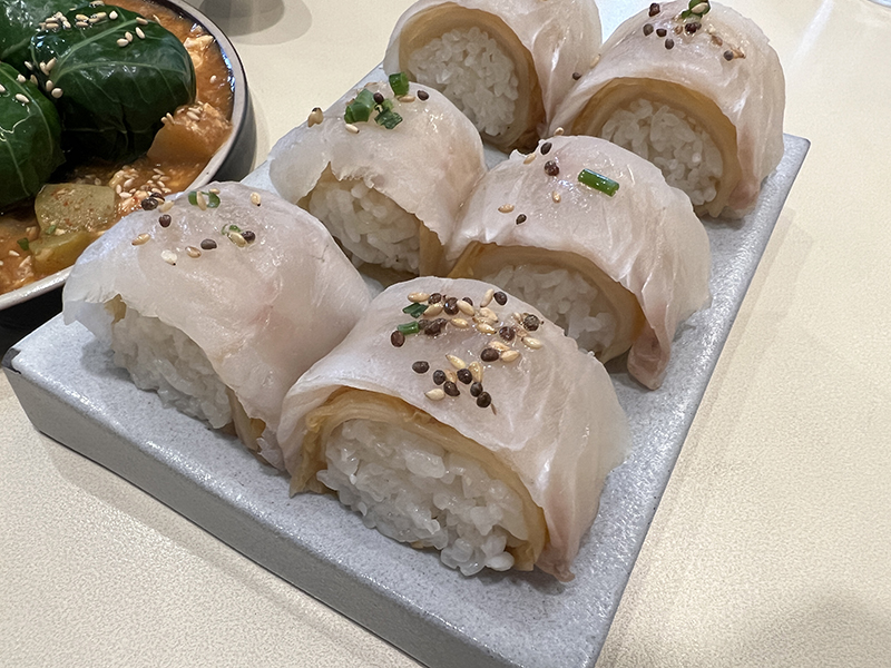 전복들깨국수, 제철회묵은지말이와 강된장쌈밥이었다