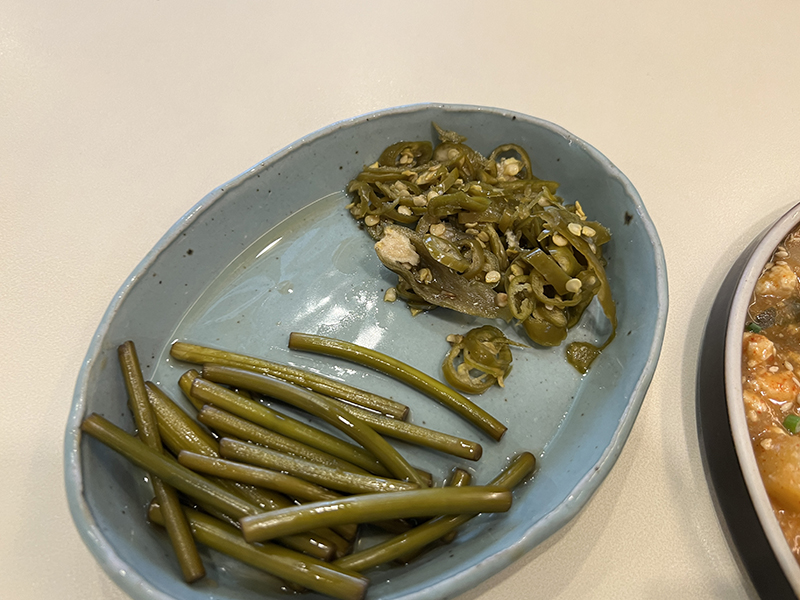 기본 찬은 마늘쫑과 고추 장아찌