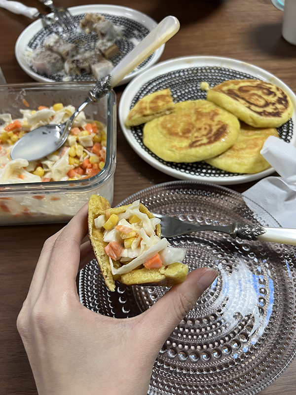 코울슬로랑 감자샐러드 생각나서 호떡에 넣어먹었는데