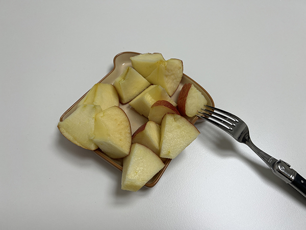 깨끗하게 닦고 사과 반개 깎아 먹음