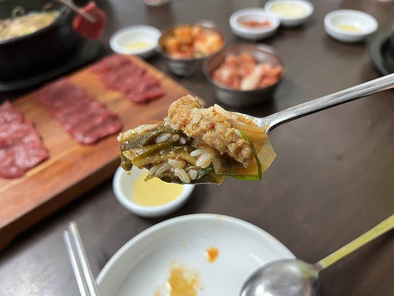 우린 포장이라 못 먹어봤던 육사시미와 내장탕, 국밥을 시켰다!