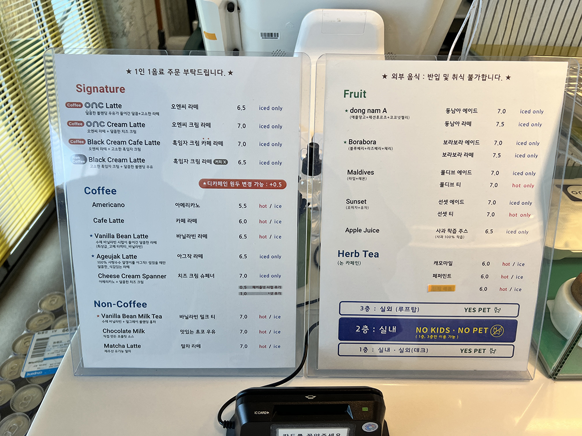 음료와 디저트 메뉴판은 위에 사진 참고!
