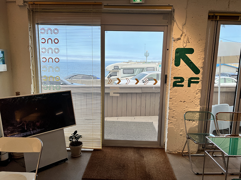 고성 온더버튼 모히또에이드 아이스아메리카노 애플턴오버 - 백촌막국수 기다리는 동안 가볼 곳을 찾아보다 걸어서 10분 거리에 있는 오션뷰 카페를 찾았다 전용주차장이 먼저 보이고 건너편에