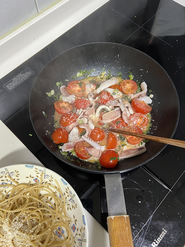 집 와서 토마토랑 오징어 넣어 파슷하!