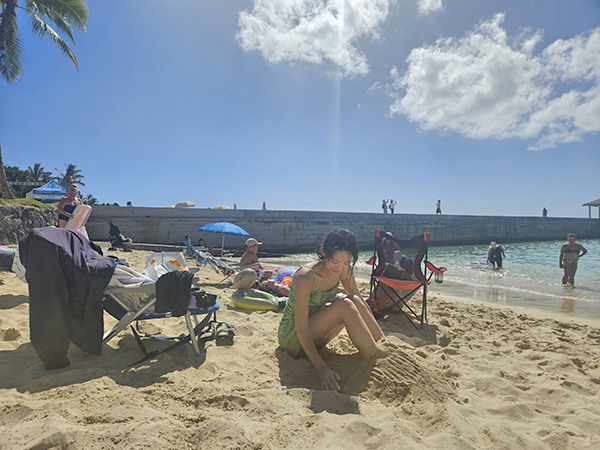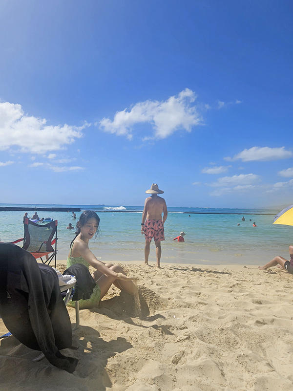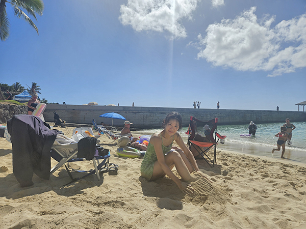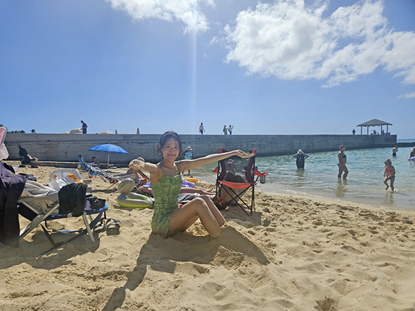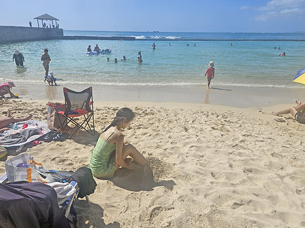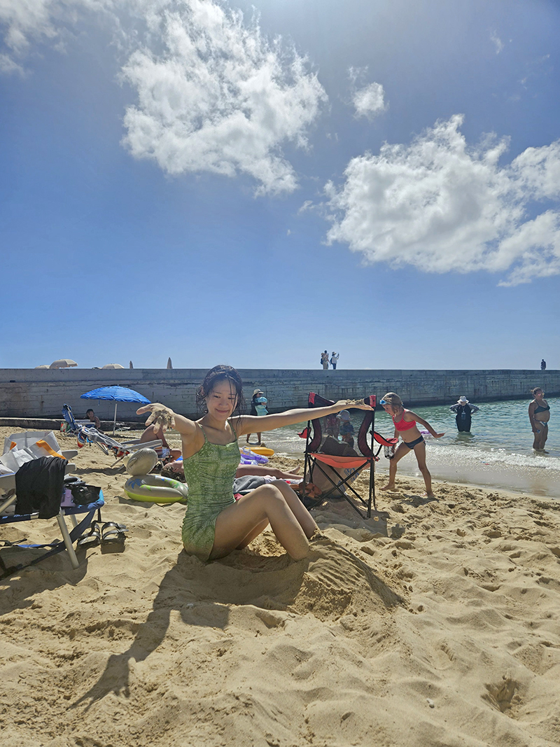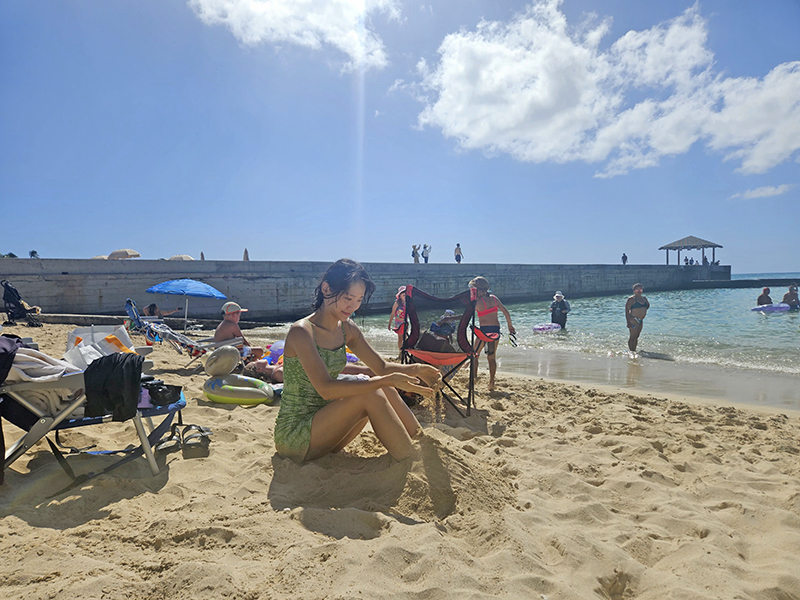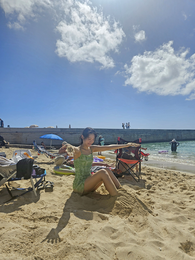 모래 부드럽고 따뜻해서 앉아서 놀다가 씻고