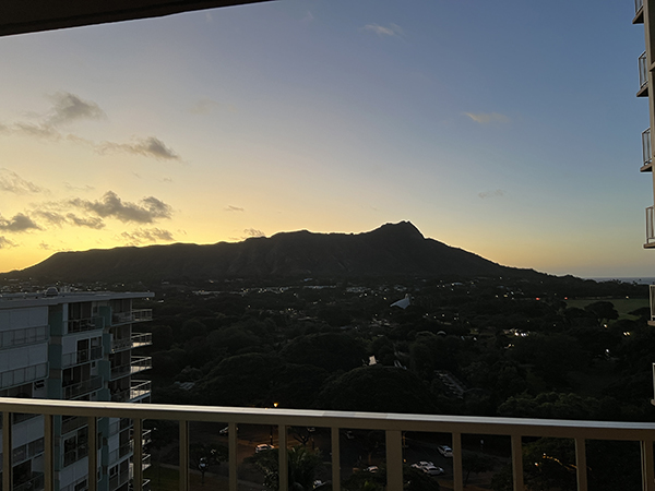 일어나서 다이아몬드헤드 뒤로 올라오는 해 보고 멋있어서 소리 질렀다😍
