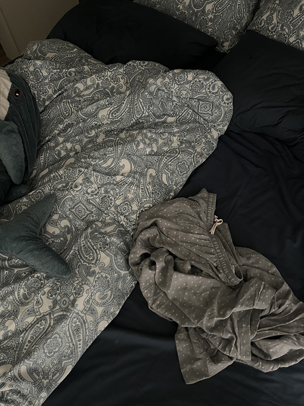 아침에 일어났는데 침구 잠옷 인형 다 파랑이라 귀여워서 사진!