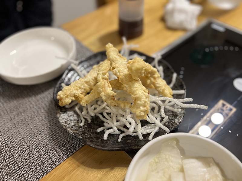 복껍질무침과 밑반찬, 복튀김을 열심히 먹는다!