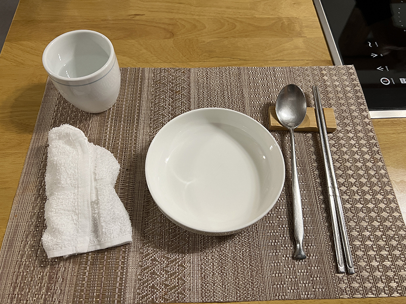 테이블마다 앞접시, 컵, 수저, 소스, 티슈가 세팅되어 있음!