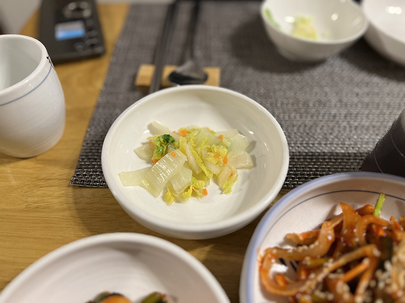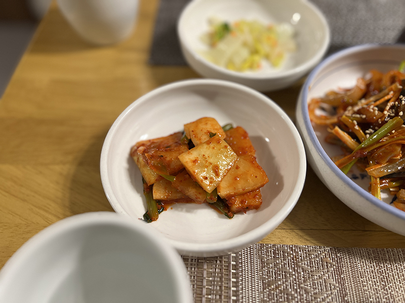 깔끔해보이는 반찬이 복껍질무침과 함께 나왔다!