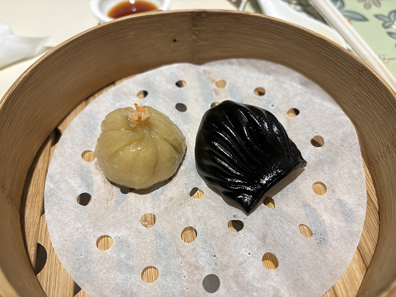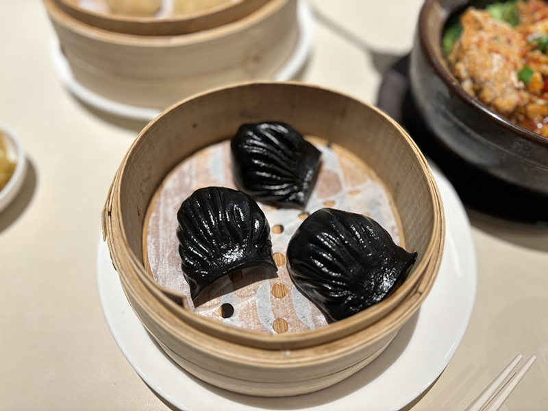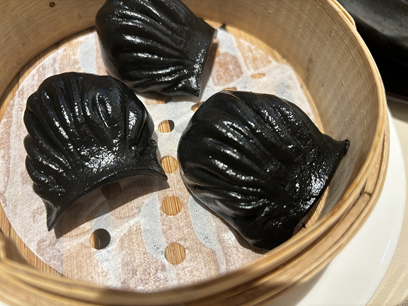 오징어먹물로 만들어진 만두피 안에 다진 새우가 들어있음!