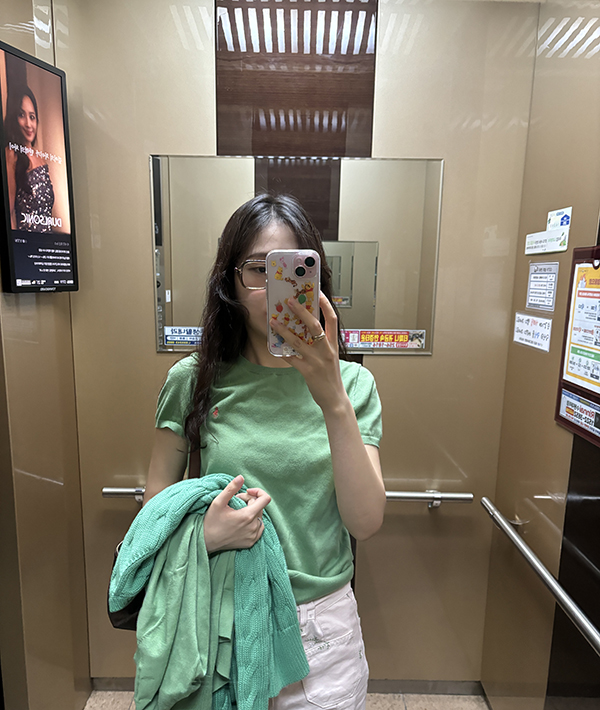 상큼한 거 마시는데 옷이랑음료랑 색이 딱 맞아 ㅎㅎ